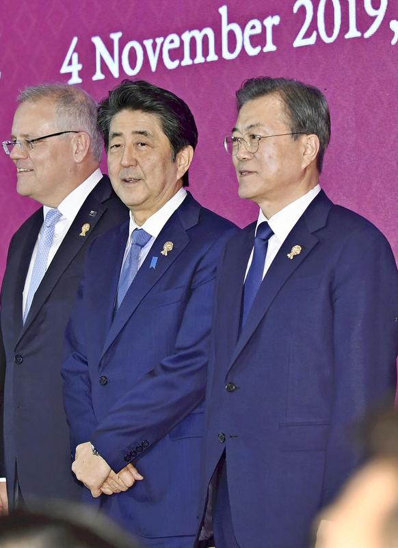 According to the source, Moon made this suggestion to Abe, saying that "a variety of options" are possible for the purpose, when they had a 11-minute conversation in the waiting room for state leaders attending a summit meeting related to the Association of Southeast Asian Nations (ASEAN) in Bangkok on Monday morning. The two leaders spoke, with only interpreters present, about issues including the requisitioned workers.