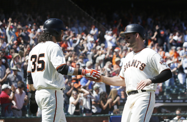 Then, Moore helped his own cause by singling in Hernandez. The Giants added a third run after Brandon Crawford smacked a double off the top of the bricks in the deepest part of the yard in right-center, bringing in Buster Posey from first.