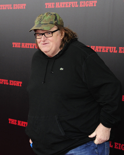 Ditching his Rust Belt flannel for a sleek, short-sleeve blue button-down, the Oscar-winning documentary filmmaker ("Bowling for Columbine") betrayed an expression of low-level alarm. The stage fright, subtle yet unmistakable, seemed to hit him in waves.