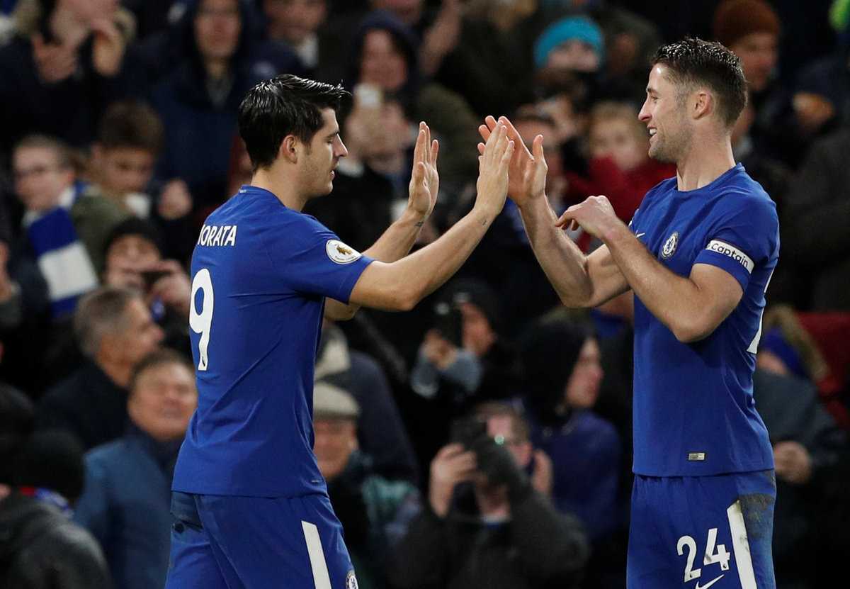 Less than a minute into the second half, Morata sprang to meet Cesar Azpilicueta's diagonal ball, reviving an all-Spain partnership that has resulted in the defender providing six assists for the striker so far this season.