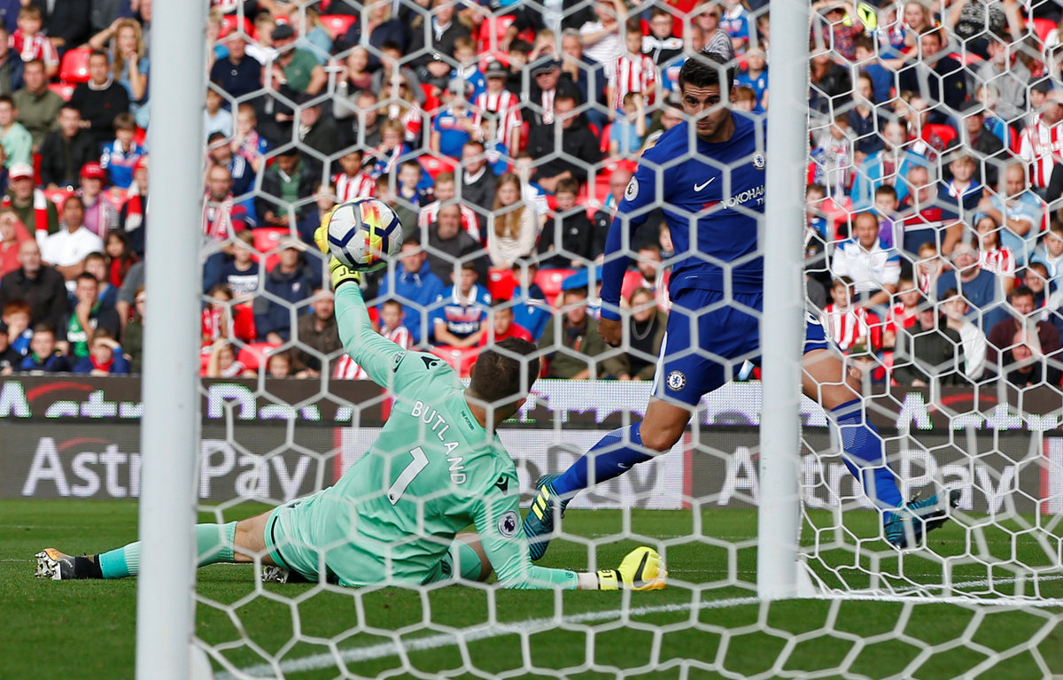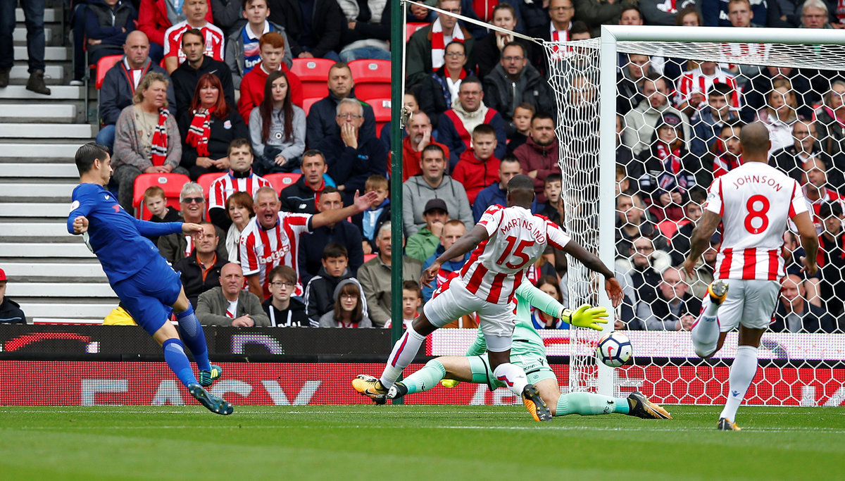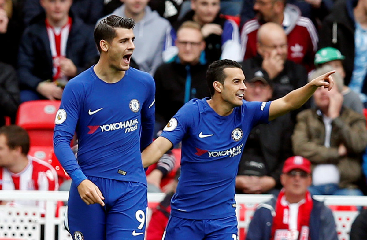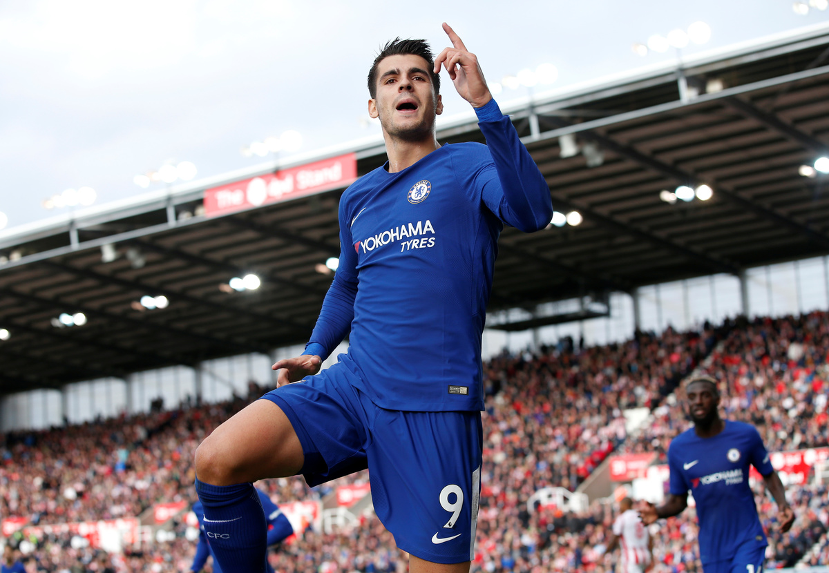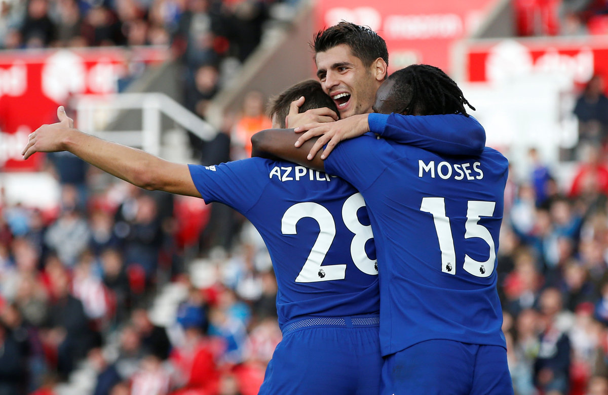 Soccer Football - Premier League - Stoke City vs Chelsea - bet365 Stadium, Stoke-On-Trent, Britain - September 23, 2017 Chelsea’s Alvaro Morata celebrates with Cesar Azpilicueta and Victor Moses after scoring their fourth goal REUTERS/Andrew Yates Soccer Football - Premier League - Stoke City vs Chelsea - bet365 Stadium, Stoke-On-Trent, Britain - September 23, 2017 Chelsea’s Alvaro Morata scores their fourth goal REUTERS/Andrew Yates Soccer Football - Premier League - Stoke City vs Chelsea - bet365 Stadium, Stoke-On-Trent, Britain - September 23, 2017 Chelsea's Thibaut Courtois in action REUTERS/Andrew Yates Soccer Football - Premier League - Stoke City vs Chelsea - bet365 Stadium, Stoke-On-Trent, Britain - September 23, 2017 Stoke City's Erik Pieters in action with Chelsea’s Alvaro Morata REUTERS/Andrew Yates Soccer Football - Premier League - Stoke City vs Chelsea - bet365 Stadium, Stoke-On-Trent, Britain - September 23, 2017 Chelsea’s Alvaro Morata scores their third goal REUTERS/Andrew Yates Soccer Football - Premier League - Stoke City vs Chelsea - bet365 Stadium, Stoke-On-Trent, Britain - September 23, 2017 Chelsea’s Alvaro Morata scores their third goal Action Images via Reuters/Craig Brough Soccer Football - Premier League - Stoke City vs Chelsea - bet365 Stadium, Stoke-On-Trent, Britain - September 23, 2017 Referee Mike Dean talks to Chelsea's Marcos Alonso and Cesar Azpilicueta as Stoke City's Glen Johnson looks on Action Images via Reuters/Craig Brough Soccer Football - Premier League - Stoke City vs Chelsea - bet365 Stadium, Stoke-On-Trent, Britain - September 23, 2017 Stoke City's Mame Biram Diouf attempts an overhead kick as Chelsea's Victor Moses looks on Action Images via Reuters/Craig Brough Soccer Football - Premier League - Stoke City vs Chelsea - bet365 Stadium, Stoke-On-Trent, Britain - September 23, 2017 Chelsea's Willian in action with Stoke City's Bruno Martins Indi Action Images via Reuters/Craig Brough Soccer Football - Premier League - Stoke City vs Chelsea - bet365 Stadium, Stoke-On-Trent, Britain - September 23, 2017 Chelsea's Willian in action with Stoke City's Eric Maxim Choupo-Moting REUTERS/Andrew YatesSoccer Football - Premier League - Stoke City vs Chelsea - bet365 Stadium, Stoke-On-Trent, Britain - September 23, 2017 Chelsea's Pedro celebrates with Cesar Azpilicueta after scoring their second goal Action Images via Reuters/Craig BroughSoccer Football - Premier League - Stoke City vs Chelsea - bet365 Stadium, Stoke-On-Trent, Britain - September 23, 2017 Chelsea’s Alvaro Morata scores their first goal REUTERS/Andrew Yates Soccer Football - Premier League - Stoke City vs Chelsea - bet365 Stadium, Stoke-On-Trent, Britain - September 23, 2017 Chelsea’s Alvaro Morata celebrates with Pedro after scoring their first goal REUTERS/Andrew Yates