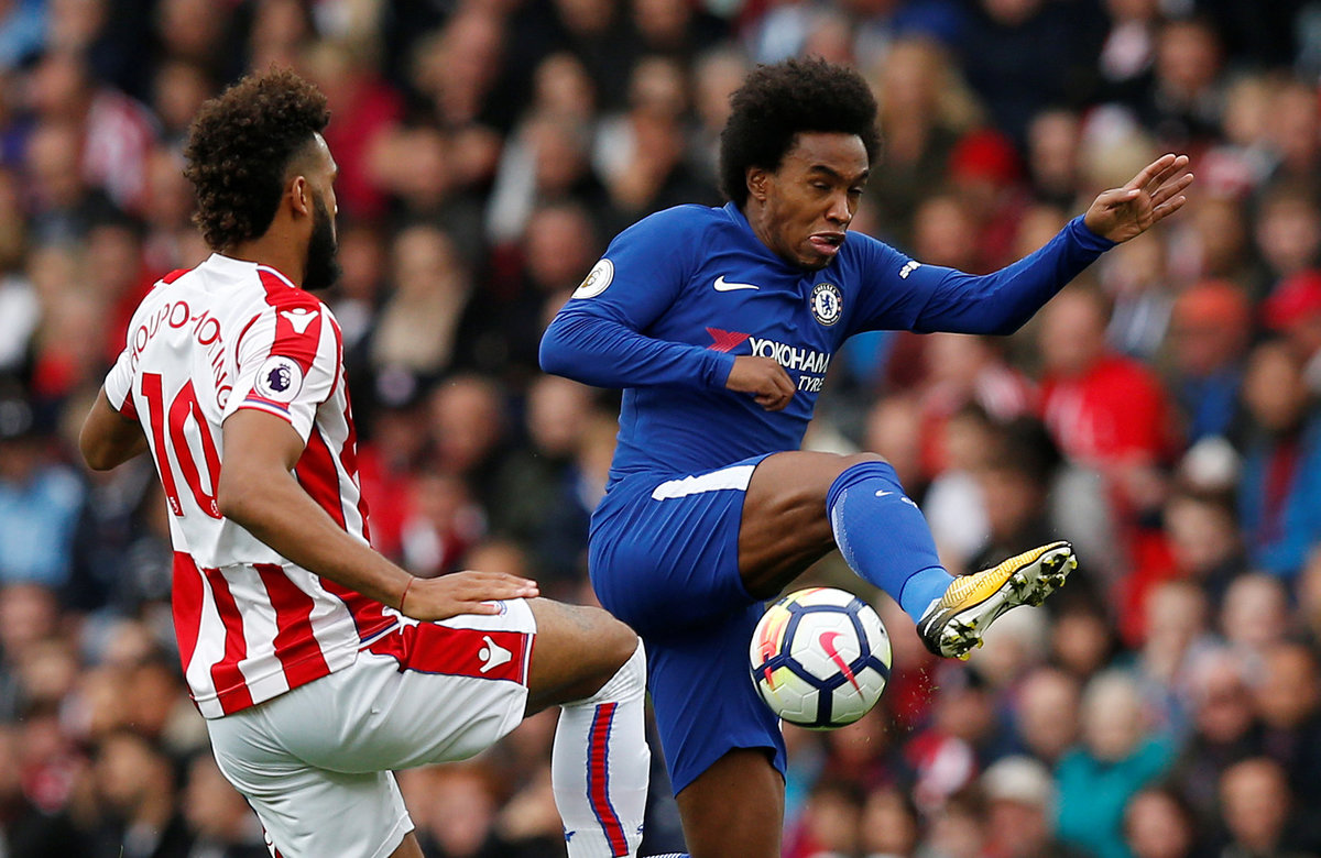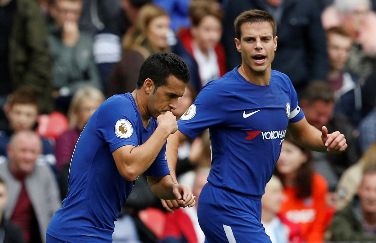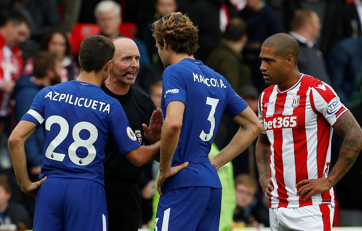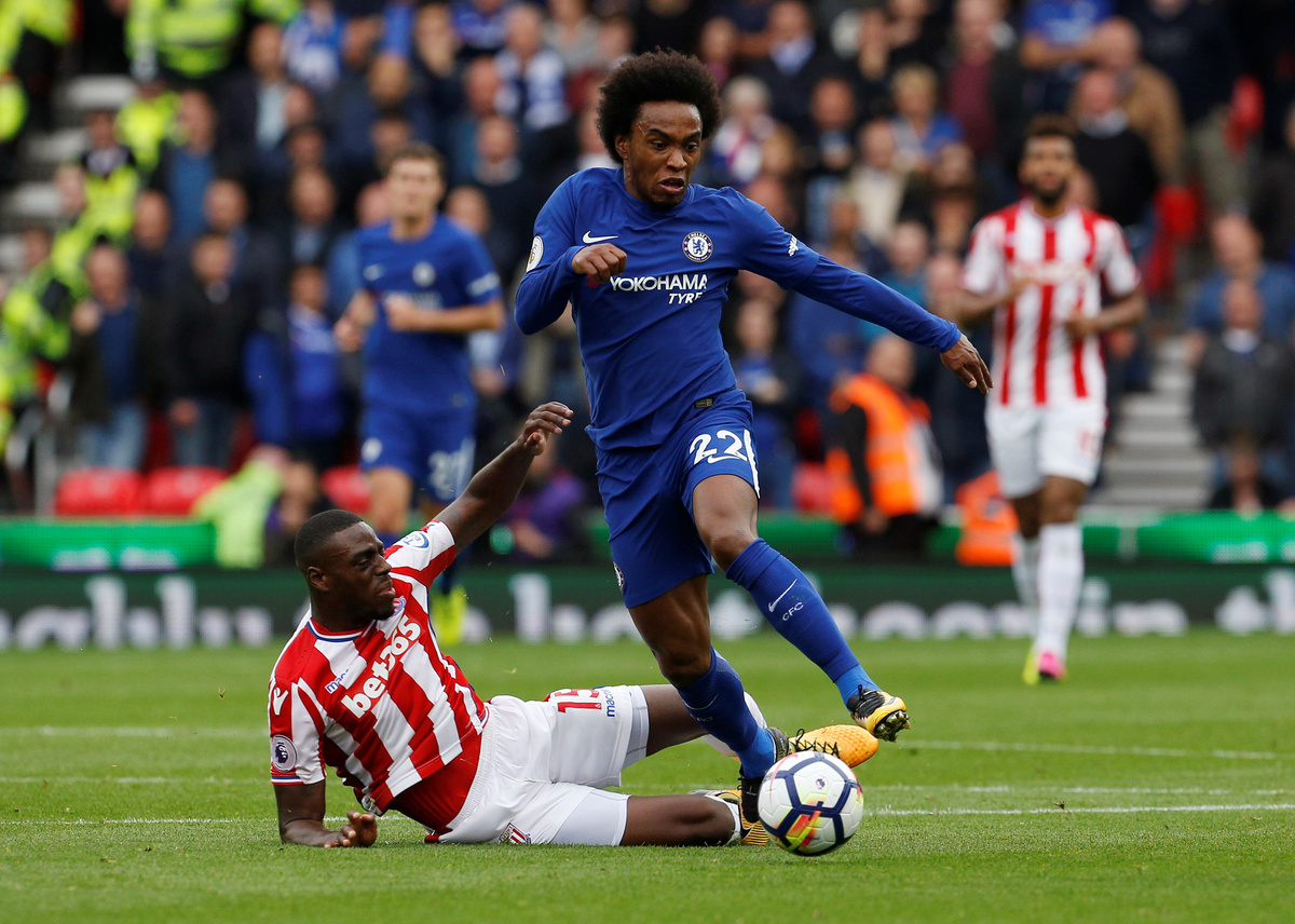 Soccer Football - Premier League - Stoke City vs Chelsea - bet365 Stadium, Stoke-On-Trent, Britain - September 23, 2017 Chelsea’s Alvaro Morata celebrates with Cesar Azpilicueta and Victor Moses after scoring their fourth goal REUTERS/Andrew Yates Soccer Football - Premier League - Stoke City vs Chelsea - bet365 Stadium, Stoke-On-Trent, Britain - September 23, 2017 Chelsea’s Alvaro Morata scores their fourth goal REUTERS/Andrew Yates Soccer Football - Premier League - Stoke City vs Chelsea - bet365 Stadium, Stoke-On-Trent, Britain - September 23, 2017 Chelsea's Thibaut Courtois in action REUTERS/Andrew Yates Soccer Football - Premier League - Stoke City vs Chelsea - bet365 Stadium, Stoke-On-Trent, Britain - September 23, 2017 Stoke City's Erik Pieters in action with Chelsea’s Alvaro Morata REUTERS/Andrew Yates Soccer Football - Premier League - Stoke City vs Chelsea - bet365 Stadium, Stoke-On-Trent, Britain - September 23, 2017 Chelsea’s Alvaro Morata scores their third goal REUTERS/Andrew Yates Soccer Football - Premier League - Stoke City vs Chelsea - bet365 Stadium, Stoke-On-Trent, Britain - September 23, 2017 Chelsea’s Alvaro Morata scores their third goal Action Images via Reuters/Craig Brough Soccer Football - Premier League - Stoke City vs Chelsea - bet365 Stadium, Stoke-On-Trent, Britain - September 23, 2017 Referee Mike Dean talks to Chelsea's Marcos Alonso and Cesar Azpilicueta as Stoke City's Glen Johnson looks on Action Images via Reuters/Craig Brough Soccer Football - Premier League - Stoke City vs Chelsea - bet365 Stadium, Stoke-On-Trent, Britain - September 23, 2017 Stoke City's Mame Biram Diouf attempts an overhead kick as Chelsea's Victor Moses looks on Action Images via Reuters/Craig Brough Soccer Football - Premier League - Stoke City vs Chelsea - bet365 Stadium, Stoke-On-Trent, Britain - September 23, 2017 Chelsea's Willian in action with Stoke City's Bruno Martins Indi Action Images via Reuters/Craig Brough Soccer Football - Premier League - Stoke City vs Chelsea - bet365 Stadium, Stoke-On-Trent, Britain - September 23, 2017 Chelsea's Willian in action with Stoke City's Eric Maxim Choupo-Moting REUTERS/Andrew YatesSoccer Football - Premier League - Stoke City vs Chelsea - bet365 Stadium, Stoke-On-Trent, Britain - September 23, 2017 Chelsea's Pedro celebrates with Cesar Azpilicueta after scoring their second goal Action Images via Reuters/Craig BroughSoccer Football - Premier League - Stoke City vs Chelsea - bet365 Stadium, Stoke-On-Trent, Britain - September 23, 2017 Chelsea’s Alvaro Morata scores their first goal REUTERS/Andrew Yates Soccer Football - Premier League - Stoke City vs Chelsea - bet365 Stadium, Stoke-On-Trent, Britain - September 23, 2017 Chelsea’s Alvaro Morata celebrates with Pedro after scoring their first goal REUTERS/Andrew Yates