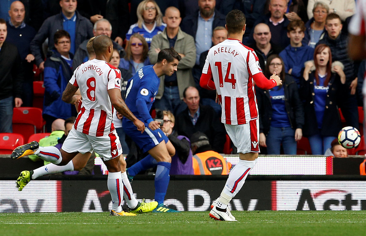 Having taken four points from home games against Arsenal and Manchester United, Stoke could hardly have anticipated their terrible start when they conceded on 83 seconds to a neat finish from Morata, his fourth goal of the season and first with his boot.