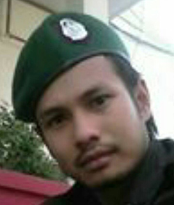 Sacked Pol Cpl Santi Jabthian of the Ayutthaya police is the prime suspect in the theft of the Sig Sauer pistols. (Photo from Sunthorn Pongpao)