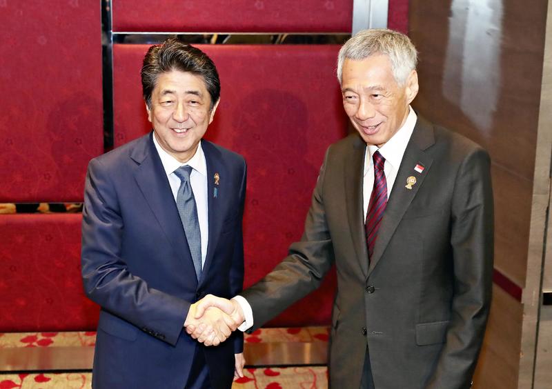 Singaporean Prime Minister Lee Hsien Loong announced that his nation would remove import restrictions during a meeting with Prime Minister Shinzo Abe in Bangkok on Monday. At a press conference Tuesday, Chief Cabinet Secretary Yoshihide Suga said, "We welcome and praise the decision. We will continue to take every opportunity to push for the abolishment of regulations put in place by countries after the Great East Japan Earthquake."