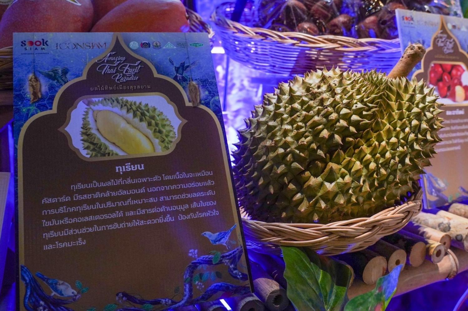 Held in collaboration with the Department of Agricultural Extension and the Department of Community Development, the fruit festival puts the spotlight on top five popular Thai fruits that are hailed as heavenly fruits due to their taste and nutritional benefits -- durian, mangosteen, mango, pomelo and coconut.