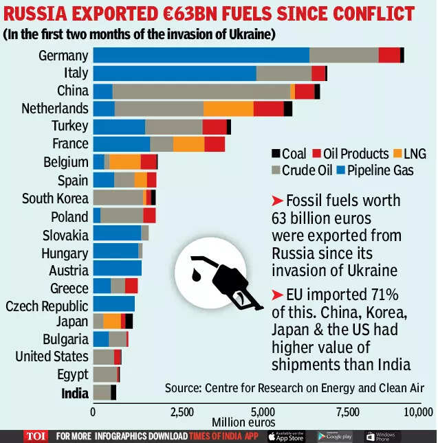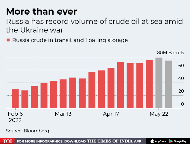 NEW DELHI: A record volume of Russian oil is on board tankers, with unprecedented amounts heading to India and China as other nations restrict imports because of the war in Ukraine.