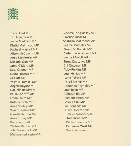 Labour frontbenchers, including the Shadow Home Secretary Diane Abbott Shadow and Education Secretary Angela Rayner have also signed the letter, alongside Tory MPs Tim Loughton and Gary Sreeter.