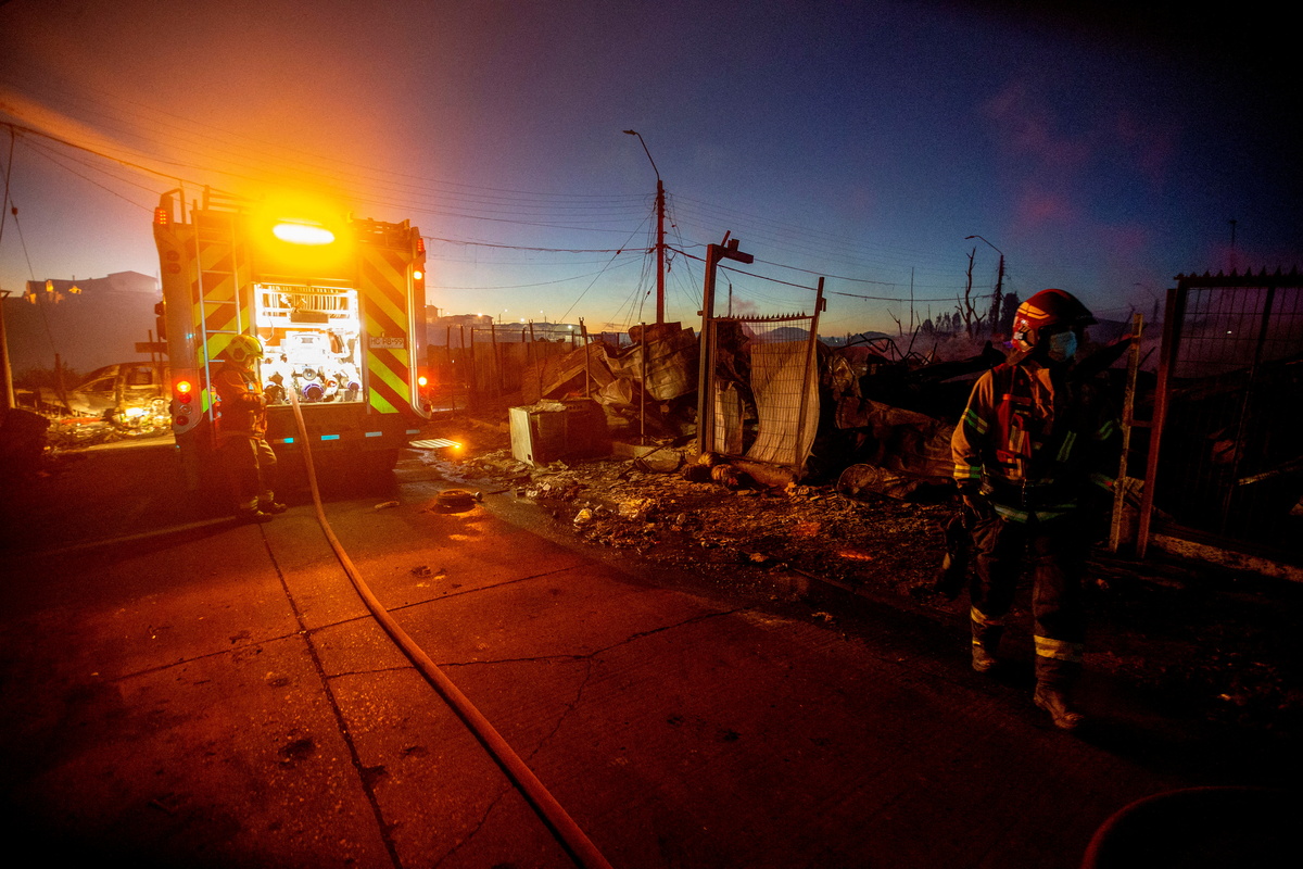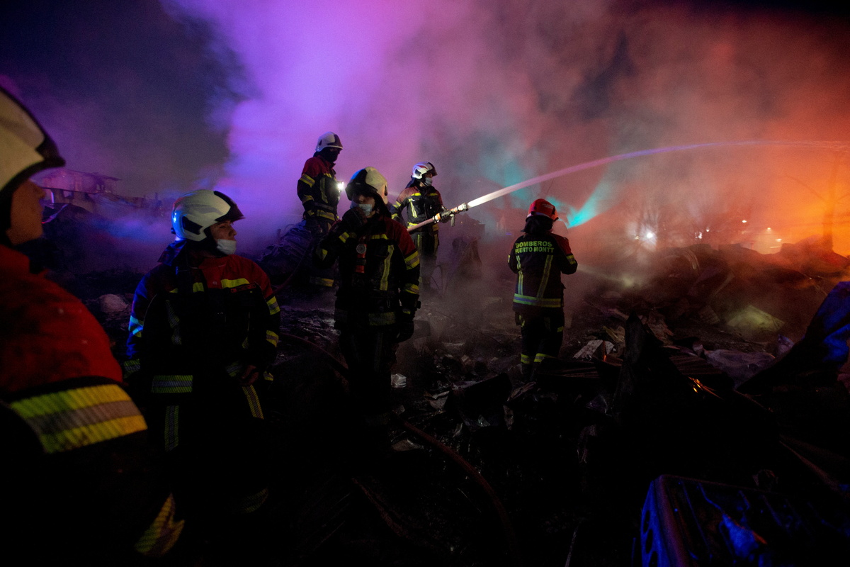 A firefighter walks amidst the remains of houses which were burned following the spread of a wildfire in Castro area, in Chiloe, Chile, December 10, 2021. REUTERS/Alvaro Vidal Firefighters work amidst remains of houses which were burned following the spread of a wildfire in Castro area, in Chiloe, Chile, December 10, 2021. REUTERS/Alvaro Vidal Firefighters work amidst remains of houses which were burned following the spread of a wildfire in Castro area, in Chiloe, Chile, December 10, 2021. REUTERS/Alvaro Vidal