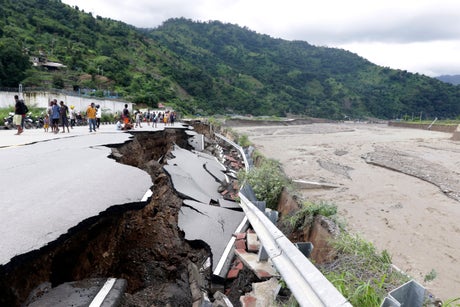 Rescue work was hampered by broken bridges and damaged roads after flooding and landslides ravaged the transport system, restricting the movement of heavy equipment and machinery.