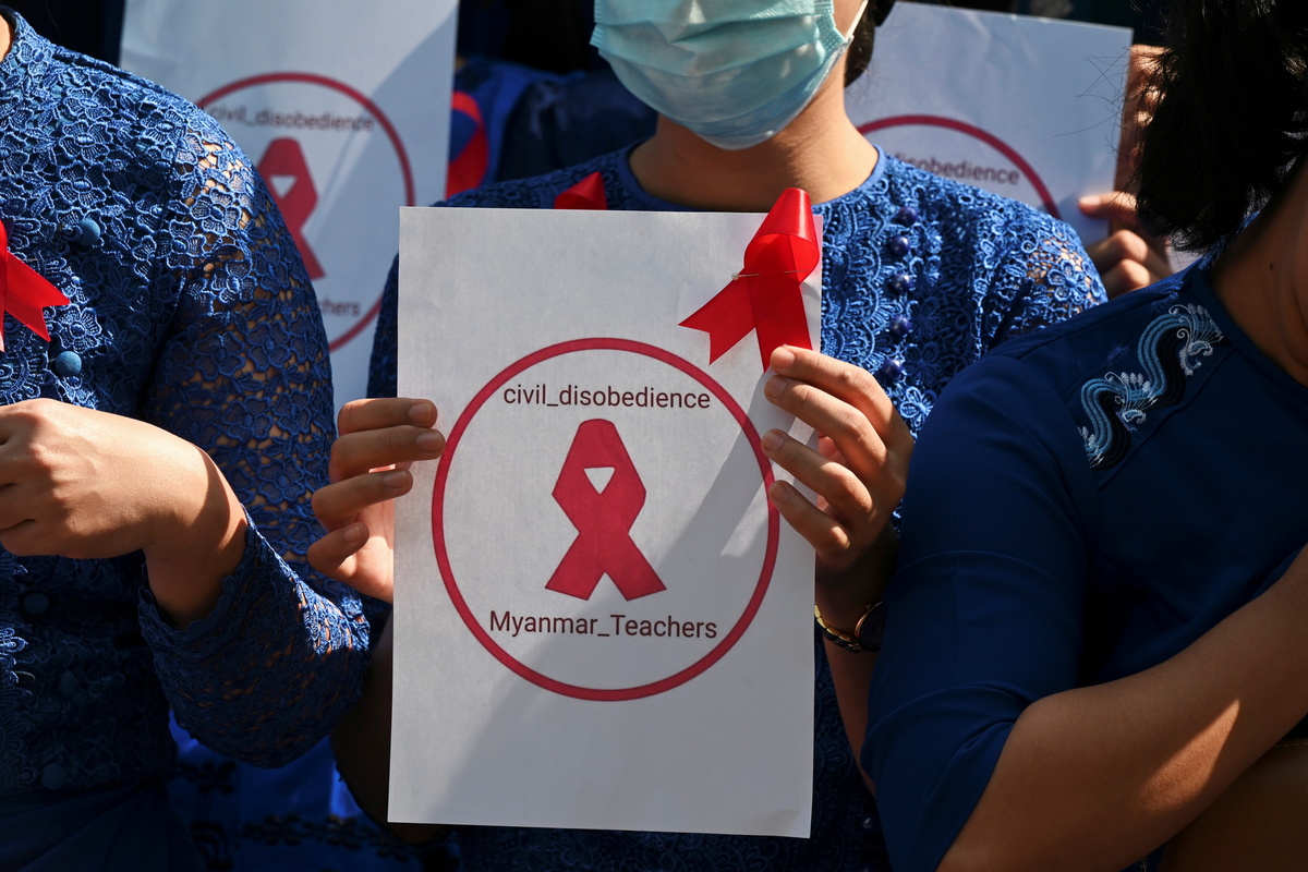 The disruption at schools echoes that in the health sector and across government and private business since the Southeast Asian country was plunged into chaos by the coup and the arrest of elected leader Aung San Suu Kyi.