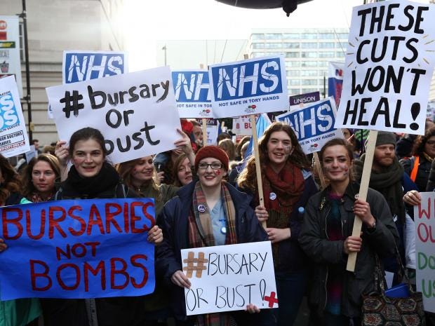 “Ministers said the removal of the student bursary would mean 10,000 more nurses, and promised a 25 per cent increase in training places this year. This has not happened.”