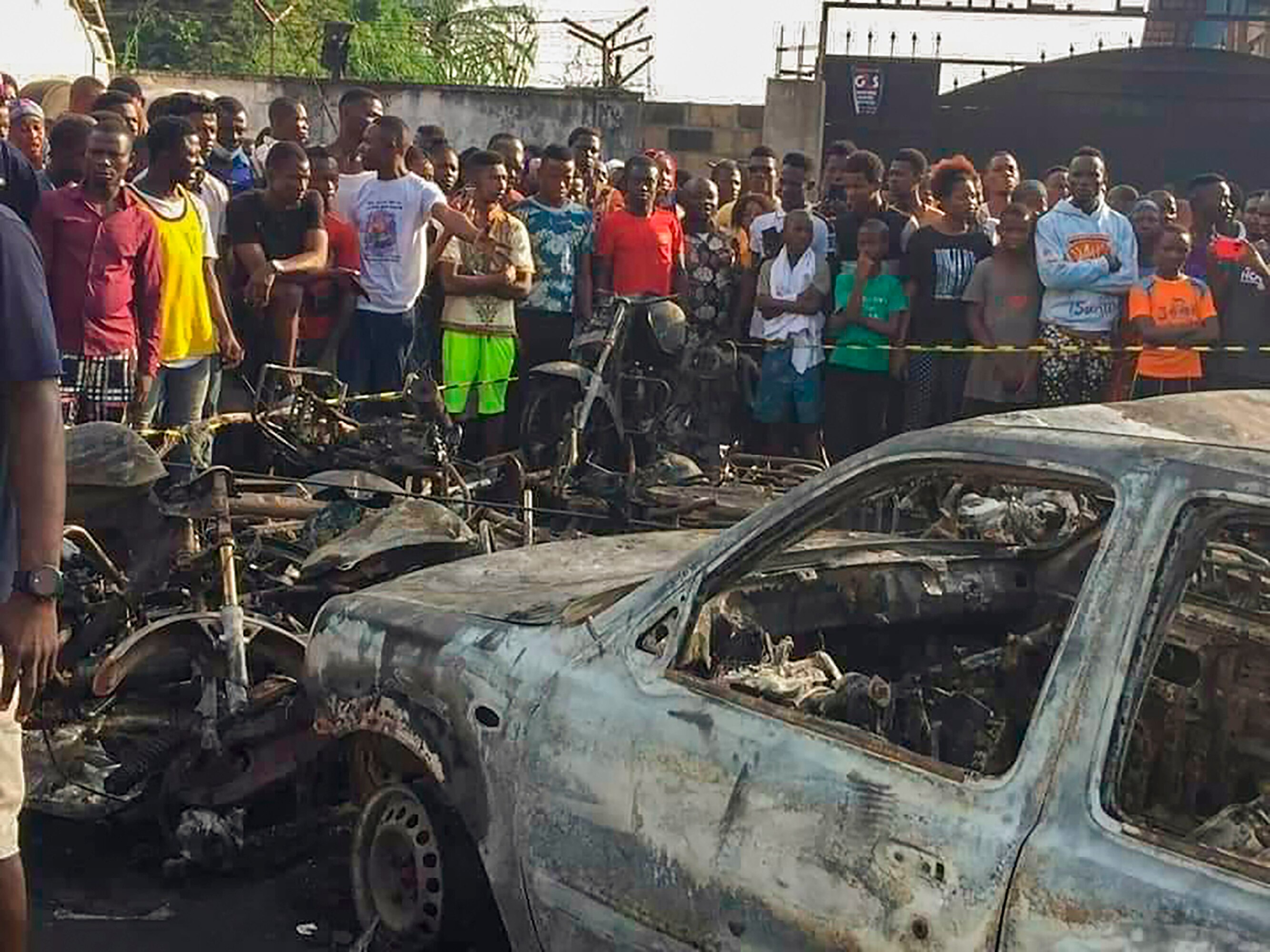 Charred remains of the victims lay strewn at the scene awaiting transport to mortuaries.