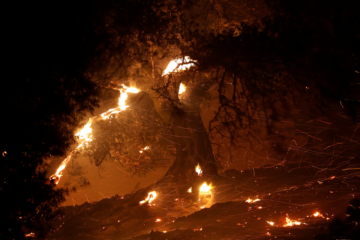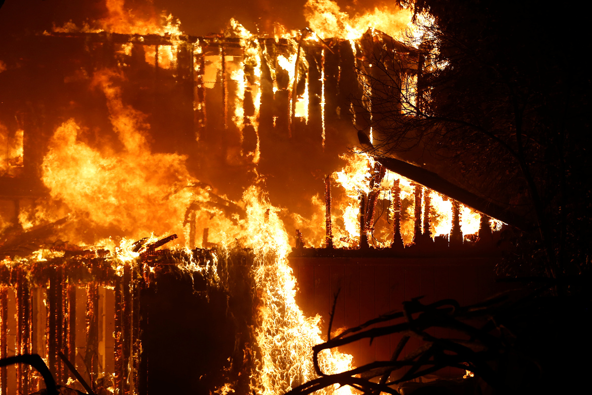 Hundreds of miles to the south in the Canyon County community of Los Angeles County, a blaze called the Tick fire prompted evacuation of an estimated 40,000 residents. Flames consumed about 5,000 acres (2,000 hectares) and destroyed an unknown number of structures, according to the Los Angeles City News Service.