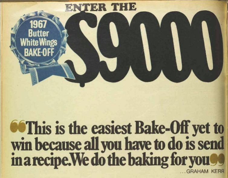 Perhaps the most extravagant of these competitions was the Butter-White Wings Bake-Off, which ran from 1963 to 1970. The competition pitted Australia’s best home bakers against each other in a variety of categories, including cakes, desserts, main courses and “busy lady recipes”.