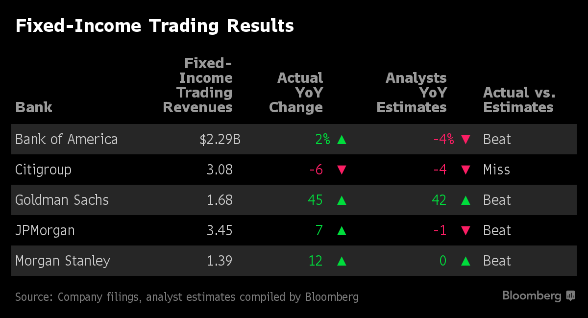 There were some negative surprises. Goldman’s equity traders posted an unexpected revenue drop in an area where peers had double-digit growth, while Citigroup’s bond unit had a 6 percent decrease in revenue that disappointed investors.