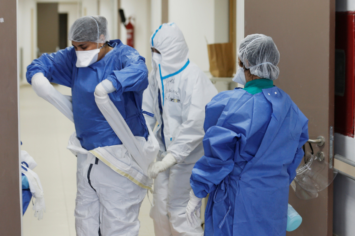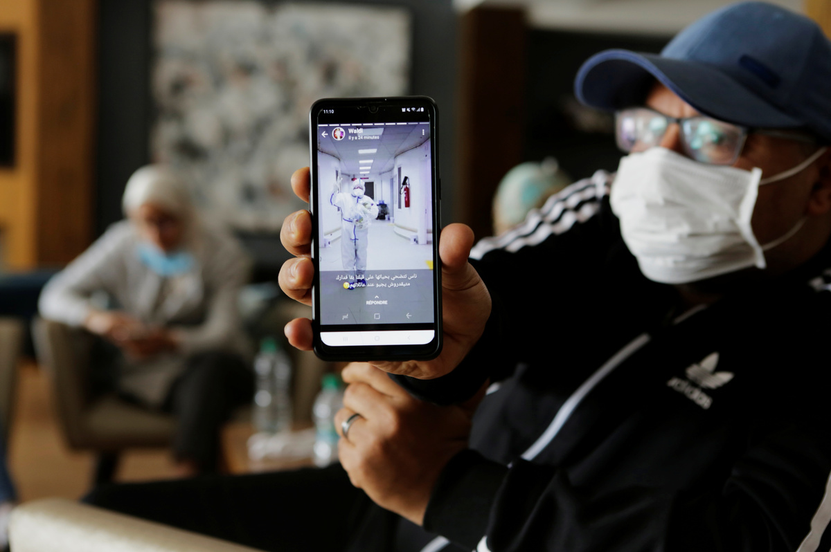 Doctor Meryem Bouchbika walks out form Prince Moulay Abdellah hospital to her place as the spread of the coronavirus disease (COVID-19) continues in Sale, Morocco April 23, 2020. Picture taken April 23, 2020. REUTERS/Youssef BoudlalDoctor Meryem Bouchbika hugs her two young girls before going to bed in her home as the spread of the coronavirus disease (COVID-19) continues in Sale, Morocco April 23, 2020. Picture taken April 23, 2020. REUTERS/Leila Bensghir NO RESALES. NO ARCHIVESNurse anaesthetist Jamal Bekali takes off his protective gear at Prince Moulay Abdellah hospital as the spread of the coronavirus disease (COVID-19) continues in Sale, Morocco April 23, 2020. Picture taken April 23, 2020. REUTERS/Youssef BoudlalDoctor Meryem Bouchbika and her colleague Chaima hold a sample tube as they treat COVID-19 patients in the Intensive Care Unit (ICU) at Prince Moulay Abdellah hospital as the spread of the coronavirus disease (COVID-19) continues in Sale, Morocco April 22, 2020. Picture taken April 22, 2020. REUTERS/Youssef BoudlalNurse Chaimaa helps Doctor Meryem Bouchbika to adjust her protective gear at Prince Moulay Abdellah hospital as the spread of the coronavirus disease (COVID-19) continues in Sale, Morocco April 22, 2020. Picture taken April 22, 2020. REUTERS/Youssef BoudlalDoctor Meryem Bouchbika and medical stuff watch the videos during their beak lunch in the office at Prince Moulay Abdellah hospital as the spread of the coronavirus disease (COVID-19) continues in Sale, Morocco April 23, 2020. Picture taken April 23, 2020. REUTERS/Youssef BoudlalA patient is seen in the Intensive Care Unit (ICU) at Prince Moulay Abdellah hospital as the spread of the coronavirus disease (COVID-19) continues in Sale, Morocco April 23, 2020. Picture taken April 23, 2020. REUTERS/Youssef BoudlalDoctor Meryem Bouchbika poses for a photograph with her colleague at Prince Moulay Abdellah hospital as the spread of the coronavirus disease continues in Sale, Morocco April 23, 2020. Picture taken April 23, 2020. REUTERS/Youssef BoudlalNurse anaesthetist Jamal Bekali prays in his room at the hotel Dawliz which is used as temporary shelter location for all medical stuff to increase social distancing during the coronavirus disease (COVID-19) outbreak in Sale, Morocco April 24, 2020. Picture taken April 24, 2020. REUTERS/Youssef BoudlalNurse anaesthetists Teimi Hakima and Najwa Bellamrabet practice sport at the hotel Dawliz which is used as temporary shelter location for all medical stuff to increase social distancing during the coronavirus disease (COVID-19) outbreak in Sale, Morocco. April 24, 2020. Picture taken April 24, 2020. REUTERS/Youssef BoudlalDoctor Meryem Bouchbika holds a sample tube in the Intensive Care Unit (ICU) at Prince Moulay Abdellah hospital as the spread of the coronavirus disease (COVID-19) continues in Sale, Morocco April 22, 2020. Picture taken April 22, 2020. REUTERS/Youssef BoudlalNurse Chaimaa helps Doctor Meryem Bouchbika to take off her protective gear at Prince Moulay Abdellah hospital as the spread of the coronavirus disease (COVID-19) continues in Sale, Morocco April 22, 2020. Picture taken April 22, 2020. REUTERS/Youssef BoudlalNurse anaesthetist Jamal Bekali speaks to his daughter from his room at hotel Dawliz which is used as temporary shelter location for all medical stuff to increase social distancing during the coronavirus disease (COVID-19) outbreak in Sale, Morocco April 24, 2020. Picture taken 24, 2020. REUTERS/Youssef BoudlalA patient is seen in the Intensive Care Unit (ICU) at Prince Moulay Abdellah hospital as the spread of the coronavirus disease (COVID-19) continues in Sale, Morocco April 23, 2020. Picture taken April 23, 2020. REUTERS/Youssef BoudlalNurse anaesthetist Jamal Bekali who has been living at the hotel for a month, takes his breakfast at Dawliz Hotel used as temporary shelter location for all medical stuff to increase social distancing during the coronavirus disease (COVID-19) outbreak, in Sale, Morocco April 24, 2020. Picture taken April 24, 2020. REUTERS/Youssef Boudlal