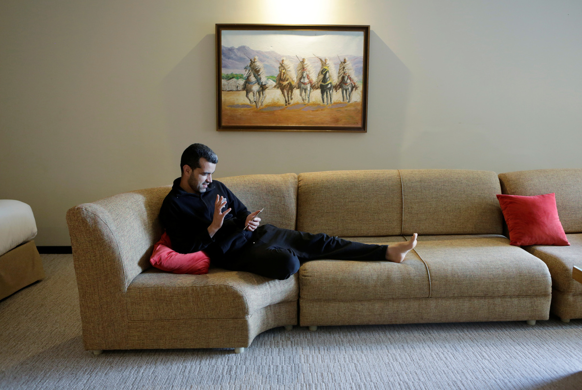 Nurse anaesthetist Teimi Hakima uses a laptop to make a video call and speak with her family in her room at hotel Dawliz which is used as a temporary shelter location for all medical stuff to increase social distancing during the coronavirus disease (COVID-19) outbreak in Sale, Morocco. April 24, 2020. Picture taken April 24, 2020. REUTERS/Youssef Boudlal