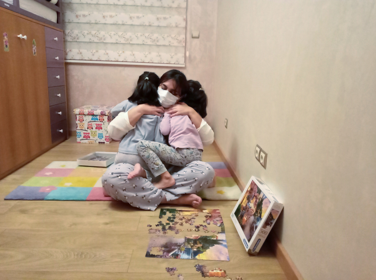 Meryem Bouchbika, an intensive care doctor living with her husband and two daughters, burst into tears when speaking of the care she must take around them at home to prevent infection.