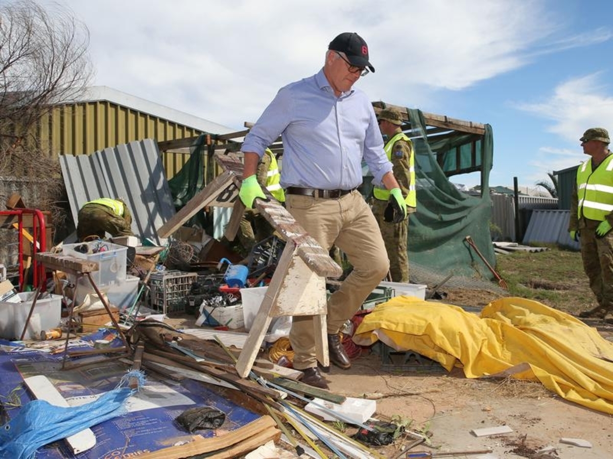 The prime minister on Friday toured Kalbarri on the state's mid-west coast, visiting properties damaged by the storm and lending a hand with the clean-up.