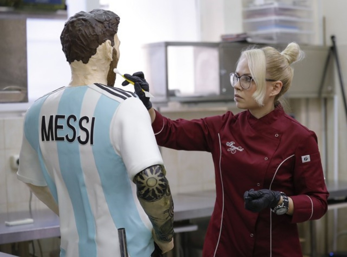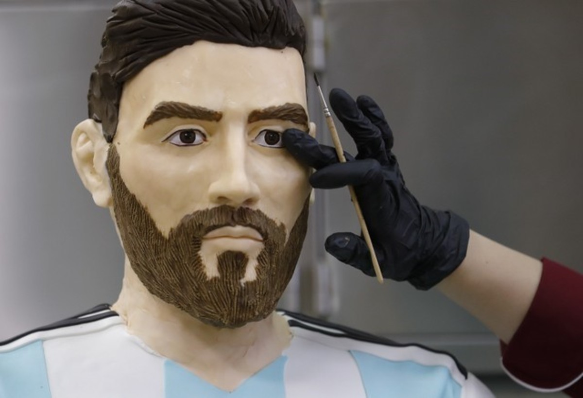An employee of Altufyevo Confectionery finishes the preparation of a life-size chocolate sculpture of Argentine soccer player Lionel Messi to top a cake for the celebration of his upcoming birthday in Moscow, a host city for the World Cup, Russia June 23, 2018. REUTERS/Tatyana MakeyevaAn employee of Altufyevo Confectionery finishes the preparation of a life-size chocolate sculpture of Argentine soccer player Lionel Messi to top a cake for the celebration of his upcoming birthday in Moscow, a host city for the World Cup, Russia June 23, 2018. REUTERS/Tatyana MakeyevaBakers of Altufyevo Confectionery prepare a life-size chocolate sculpture of Argentine soccer player Lionel Messi to top a cake for the celebration of his upcoming birthday in Moscow, a host city for the World Cup, Russia June 23, 2018. REUTERS/Tatyana MakeyevaBakers of Altufyevo prepare a life-size chocolate sculpture of Argentine soccer player Lionel Messi to top a cake for the celebration of his upcoming birthday in Moscow, a host city for the World Cup, Russia June 23, 2018. REUTERS/Tatyana Makeyeva