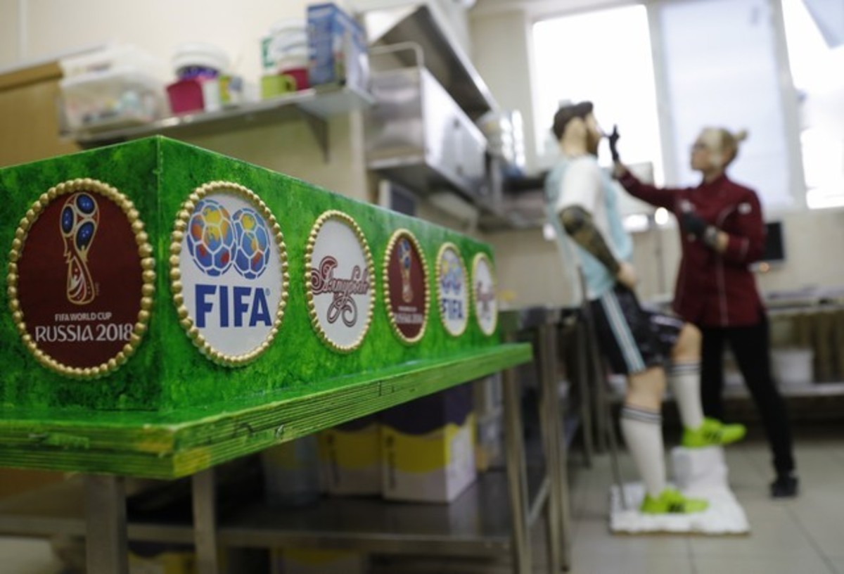 An employee of Altufyevo Confectionery finishes the preparation of a life-size chocolate sculpture of Argentine soccer player Lionel Messi to top a cake for the celebration of his upcoming birthday in Moscow, a host city for the World Cup, Russia June 23, 2018. REUTERS/Tatyana Makeyeva
