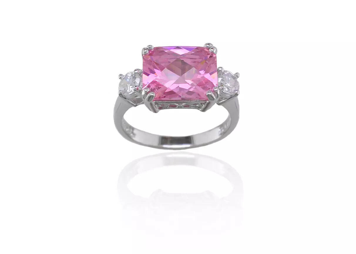 Jennifer Lopez’s platinum engagement ring from on-again boyfriend Ben Affleck back in the “Bennifer” days features a 6.1-carat radiant-cut fancy intense pink diamond with two trapezoid white diamond sides stones set in platinum from Harry Winston.