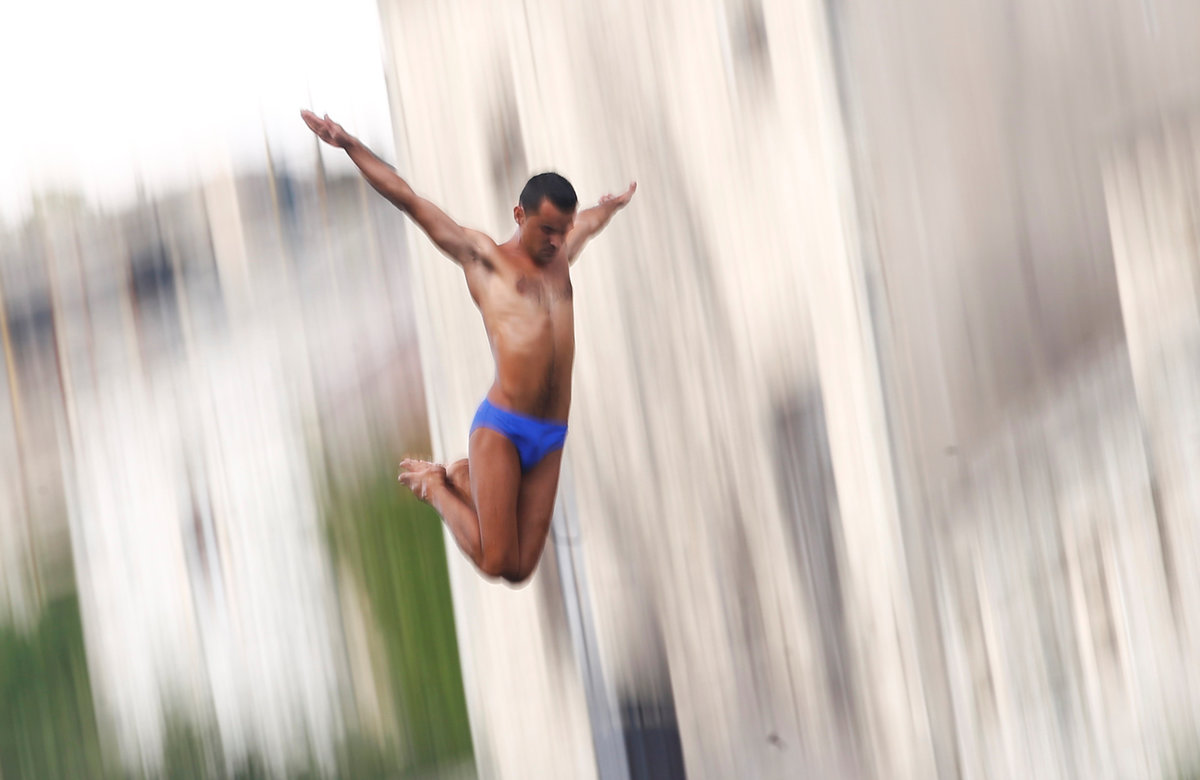 He said that the divers "run up before jumping from the bridge, fall down into the river and fly through the air like birds performing tricks".