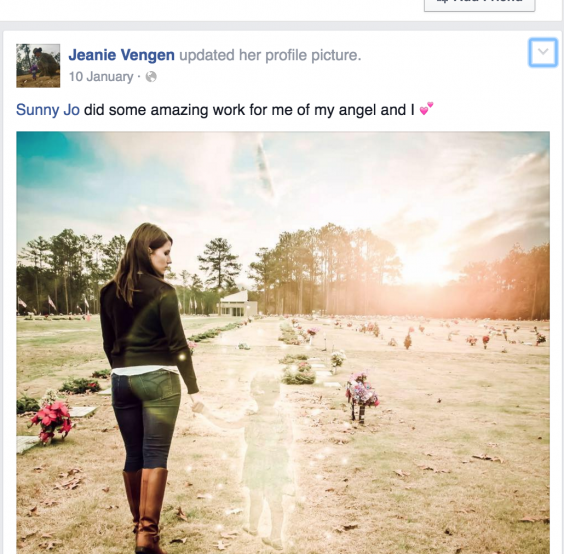 Photographer Sunny Jo said that on January 4, exactly one month after the death of the little girl, Ms Ditty contacted him and request a series of so-called “after life” images, in which he specialises. In the photographs, a transparent image of a deceased loved one is superimposed onto a photo to make them look like an angel.