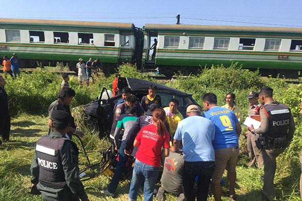 The crash happened at the unguarded crossing between Maluan and Thung Phor railway stations in tambon Phunphin, said Pol Lt Col Chokdee Sukhor, investigation chief at Phunphin police station, who was reported at around 8.35am on Saturday.