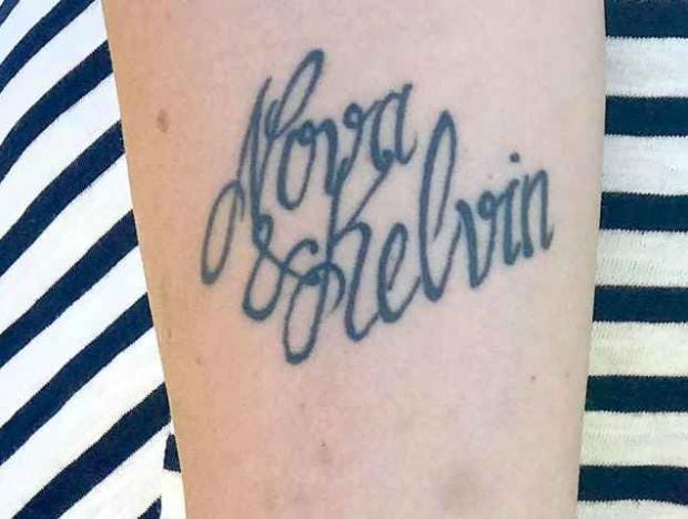 Johanna Giselhall Sandstrom asked a local tattoo artist in Kyrkhult, Sweden, to have the names of her two offspring inked onto her arm.