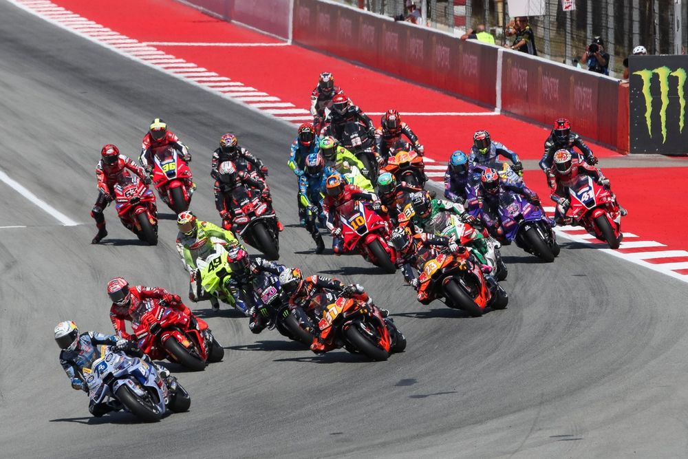 At the start of the race, Alex Marquez got the holeshot from pole position on the Gresini Ducati, with Fabio Quartararo repassing Marc Marquez for second after initially dropping behind with a slower getaway.