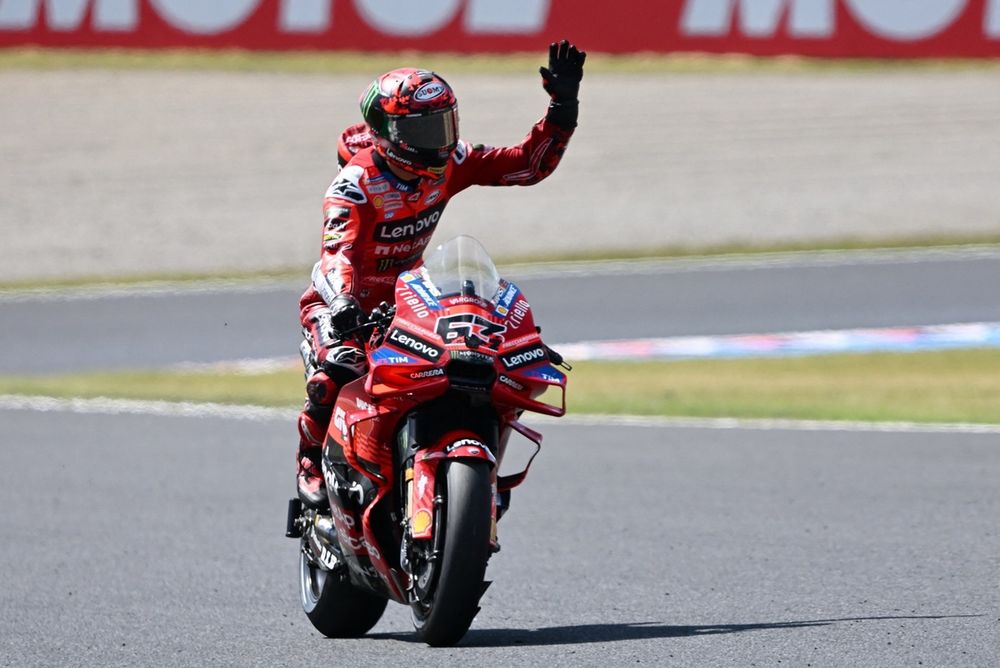 Marquez recovered from a slow first lap to grab second behind Bagnaia after passing both Acosta and Mir at the final corner in quick succession.
