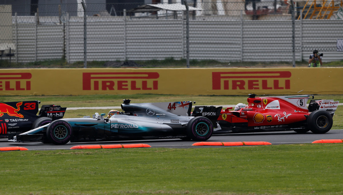 Ferrari's Vettel, who started on pole, needs to score 16 points more than his Mercedes rival to keep the title fight open to the next round in Brazil.