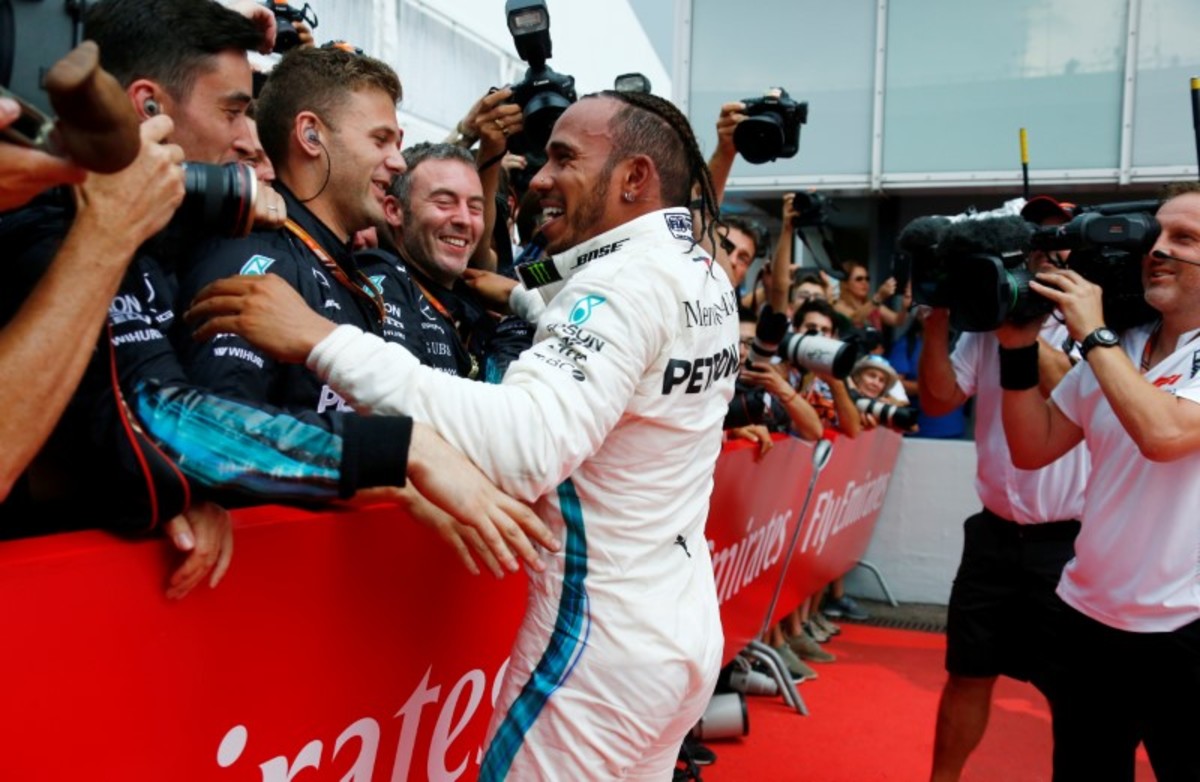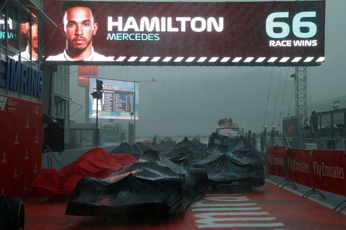 It was the 66th win of his F1 career, and Mercedes' 80th, and minutes after the finish, the skies opened with an array of thunder and lightning and a torrential downpour that would have stopped any race.
