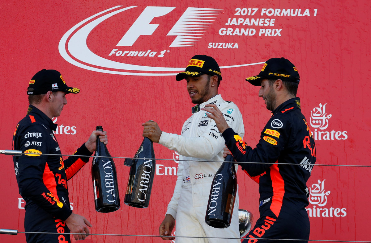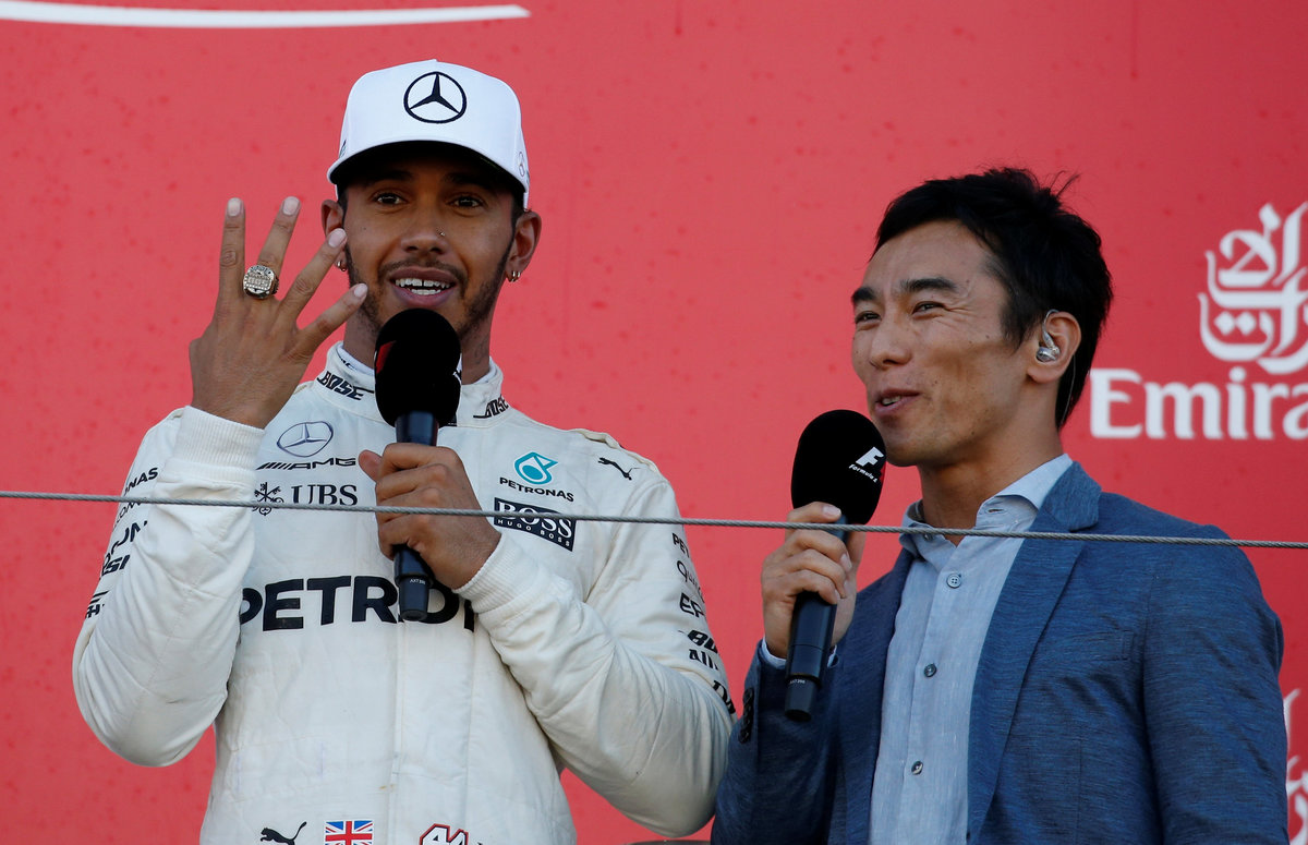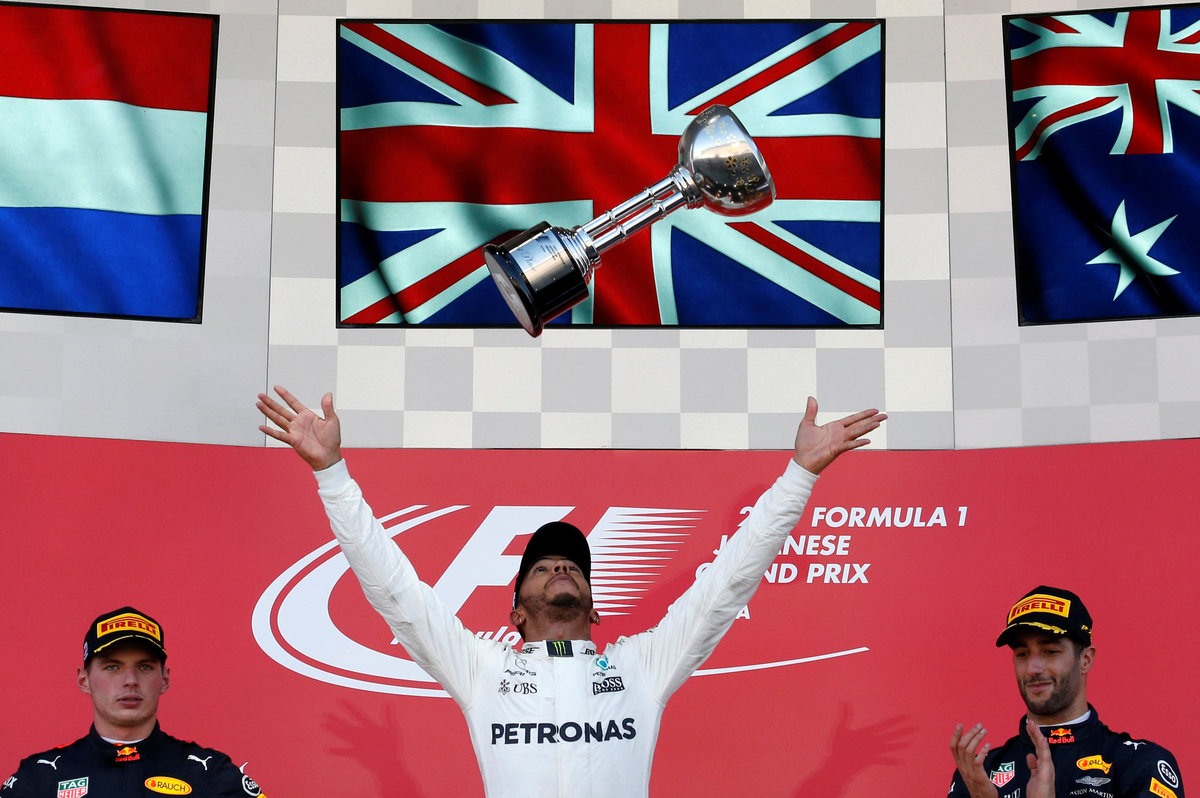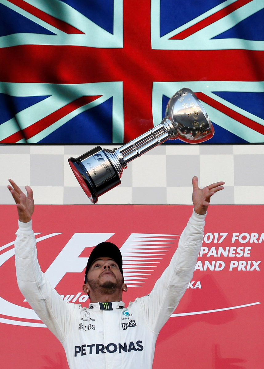 SUZUKA, Japan (Reuters) - Lewis Hamilton was within reach of his fourth Formula One title on Sunday after winning the Japanese Grand Prix for Mercedes while Ferrari's Sebastian Vettel suffered engine problems and failed to finish.
