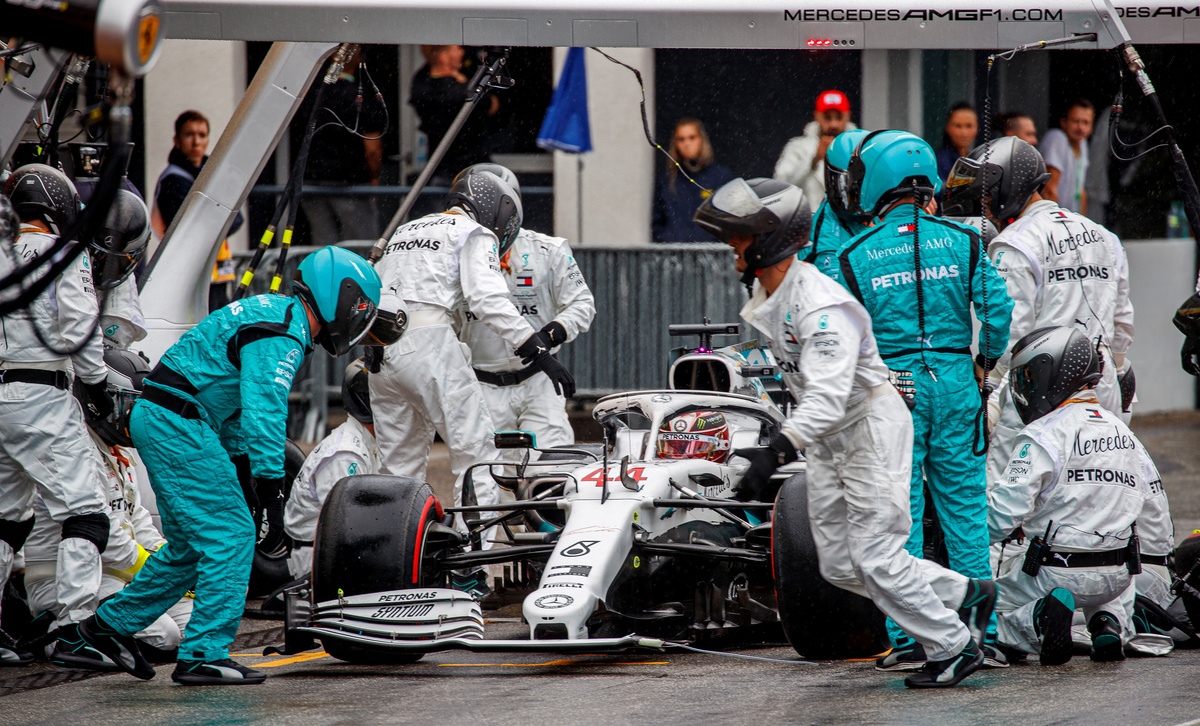 Mercedes had pulled out all the stops, with their cars painted in a special one-off livery, team-members dressed in 1950s-style kit and company bigwigs and Mercedes-Benz board members in attendance.