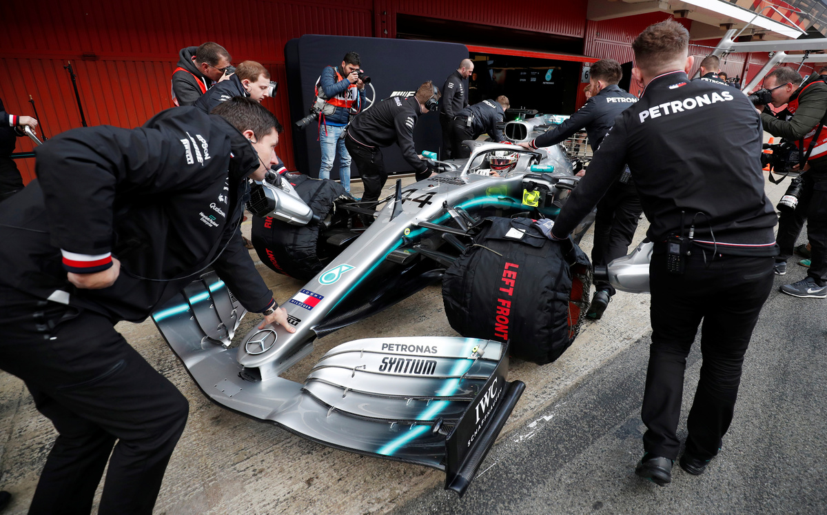 Five times world champion Lewis Hamilton, working through the Mercedes testing programme, did one more lap than Leclerc in the morning stint before handing over to team mate Valtteri Bottas.