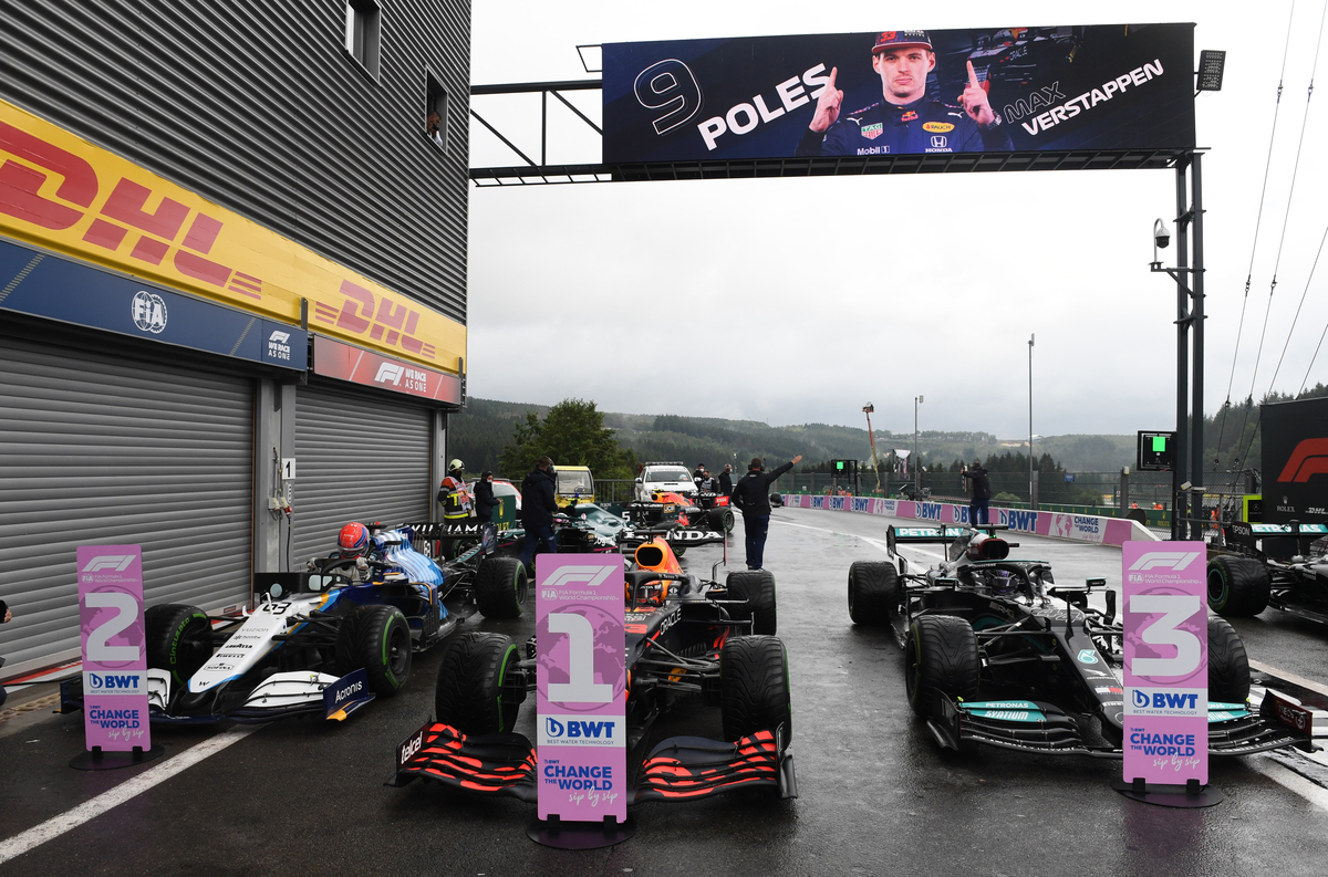 The Dutchman scythed through the spray in one minute, 59.765 seconds with George Russell, having fended off the third-placed Mercedes of championship leader Lewis Hamilton, falling just 0.321 seconds short of a shock maiden pole in his Williams.
