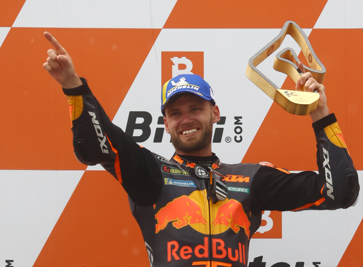 South African Brad Binder delivered a sensational home Austrian MotoGP win for his KTM team on Sunday after a late, crazy gamble to stick to slick tyres on a wet and slippery track paid off.