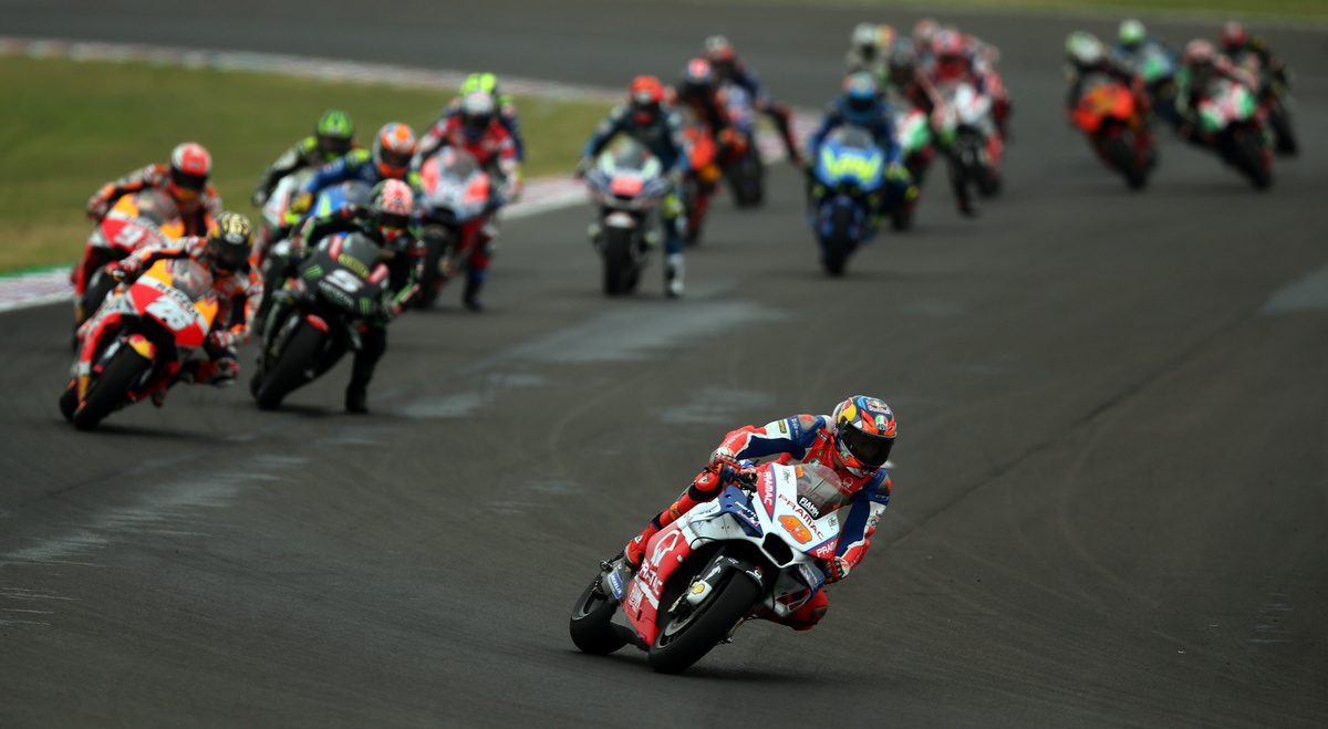 Motorcycle Racing - Argentina Motorcycle Grand Prix - MotoGP race - Termas de Rio Hondo, Argentina - April 8, 2018 - Alma Pramac Racing rider Jack Miller of Australia leads the pack. REUTERS/Marcos Brindicci