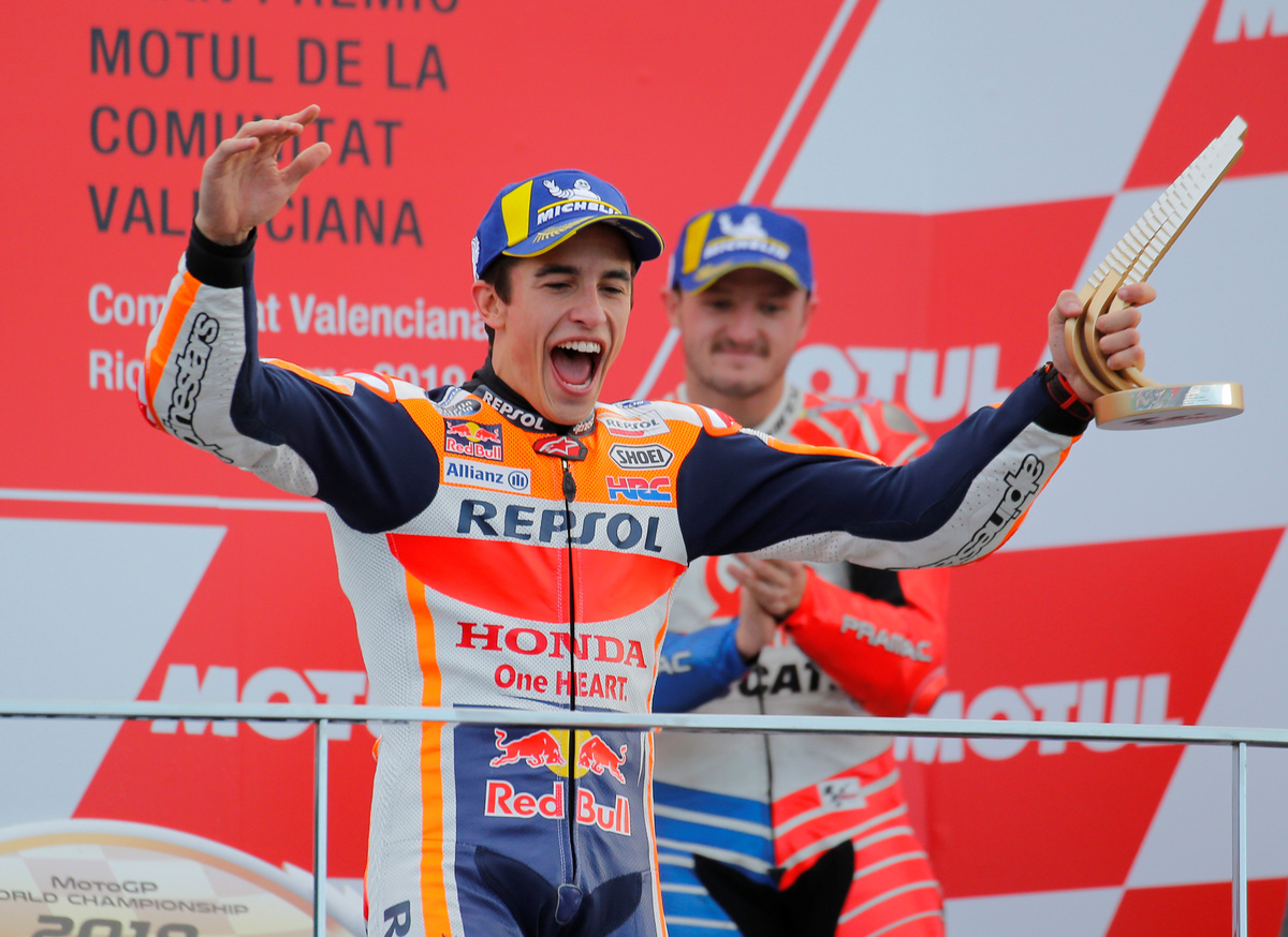 (Reuters) - World champion Marc Marquez won the Valencia GP on Sunday with a superb performance for his 12th victory of the season to ensure that the Repsol Honda team won the teams' world title.