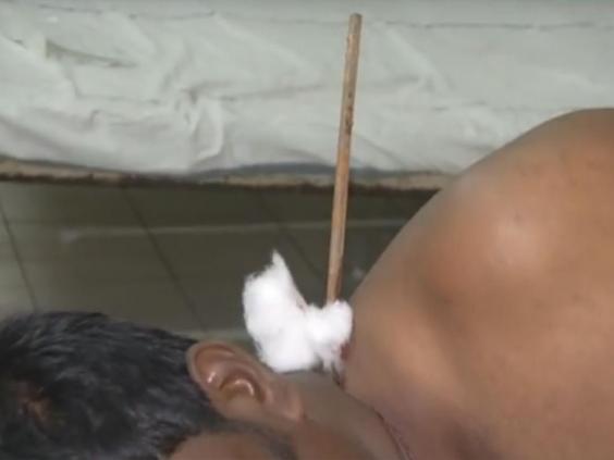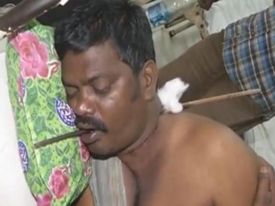 Miraculously surgeons removed the rod - and Suresh, who works as a farmer, is now recovering at home in Andhra Pradesh's East Godavari district in India.