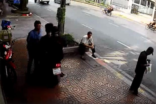 A motorcyclist driving on a footpath has been pilloried on social media after a video posted online showed him deliberately running down a man at a bus stop in Bangkok’s Nang Loeng area.