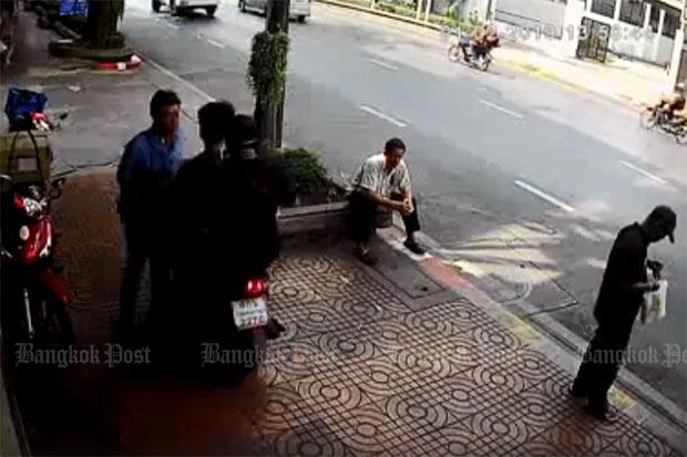 A motorcyclist driving on a footpath has been criticised on social media after a video posted online showed him deliberately running down a man at a bus stop in Bangkok’s Nang Loeng area.