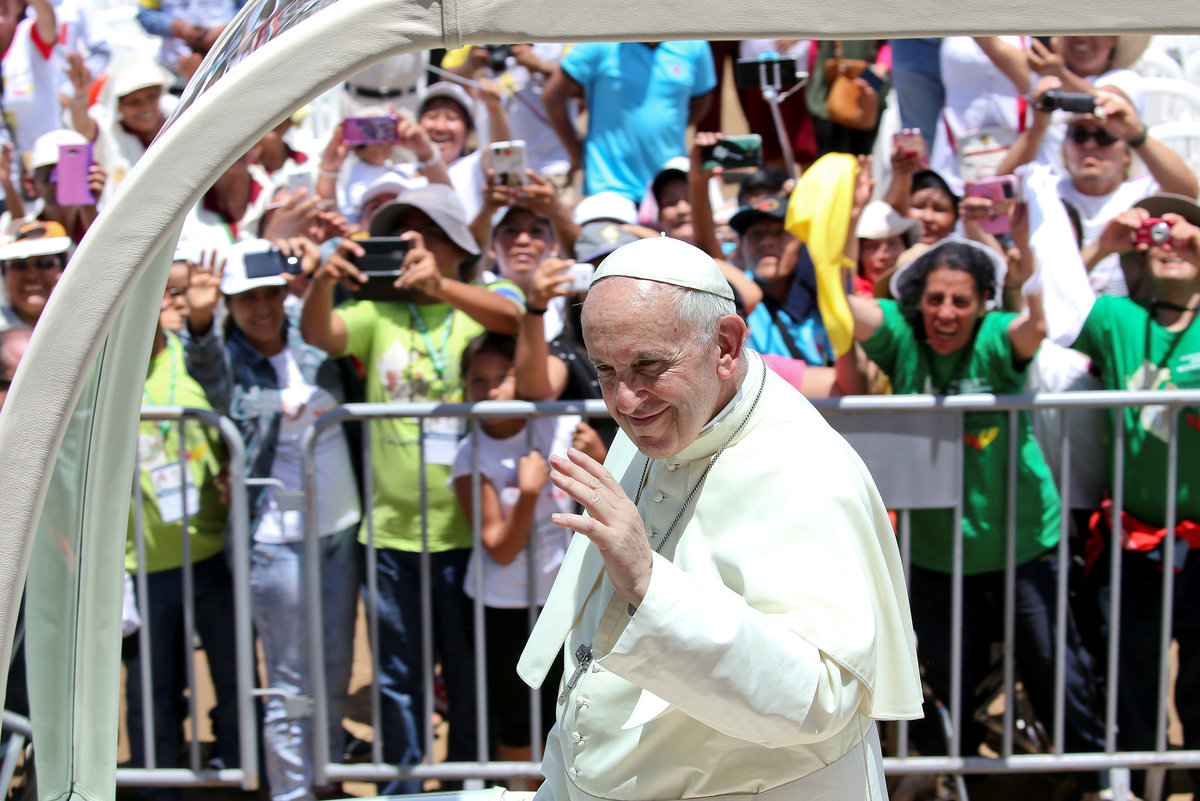 While the pope was being driven into Lima from the airport, one of the wheels of the Fiat 500 that was taking him into the city began losing air on the highway.