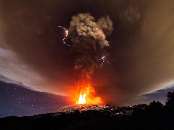 The eruption caused a rare “dirty thunderstorm”, spewing ash into the Sicily skyline lit up by volcanic lightning.