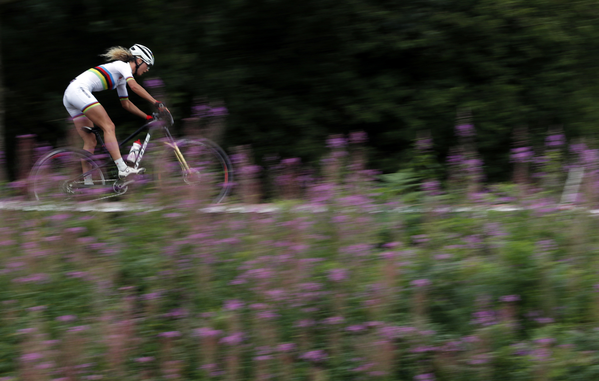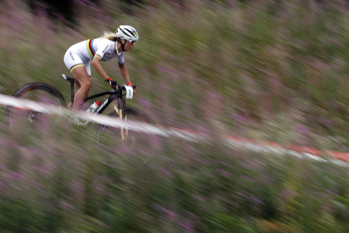 Ferrand Prevot clocked 1:33:33 with bronze medallist, Belgium's Githa Michiels clocking 1:34:56.