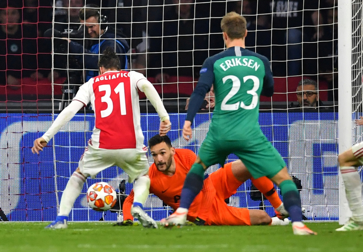 Ziyech shot against the post, then Tottenham's former Ajax defender Jan Vertonghen headed against the crossbar with the goal gaping before Lloris's save kept Spurs alive.