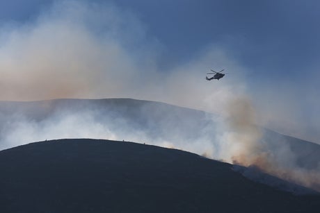 Helicopters were flown in to assist fire crews tackling a blaze in Northern Ireland’s Mourne Mountains that was described as “the most challenging” emergency services have ever faced.